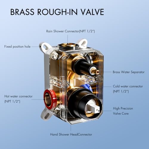 Our shower faucet set is equipped with a patented 3-way diverter, giving you the flexibility to alternate between the overhead shower, hand shower, or both. This feature provides unmatched convenience, allowing you to customize your shower experience to suit your preferences.