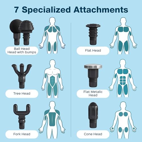 Customize your massage experience with 7 interchangeable heads. This versatile percussion massager effectively tackles tension, accelerates recovery, and enhances flexibility, making it perfect for personal use or post-workout recovery.