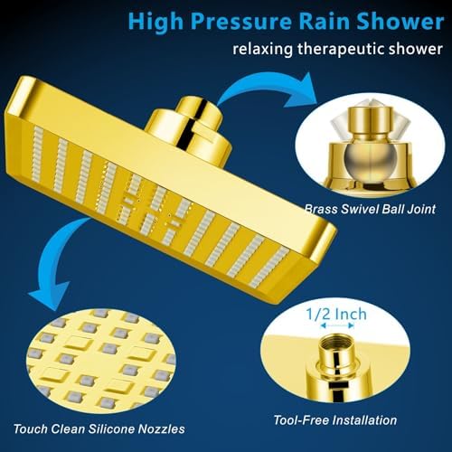 Voolan High Pressure Rain Shower Head – Luxury Modern Design – Adjustable Replacement for Bathroom Shower – 6″ Square Hi