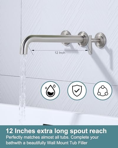 Crafted from solid brass, this wall mount tub filler is built to last. Its durability ensures long-term performance while resisting corrosion and leaks, making it a reliable choice for any bathroom.