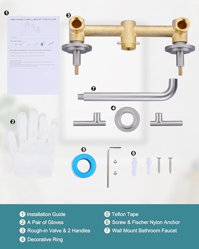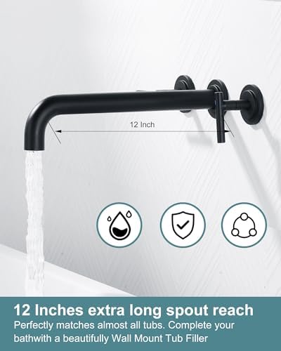 Be the first to review “WOWOW Gold Wall Mount Tub Filler – High Flow Solid Brass Faucet with Long Spout Reach & Two Handles – Includes Brass Rou”